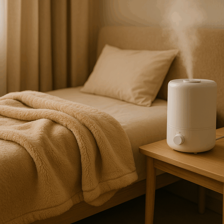 寝室に小型の加湿器を設置するだけで、湿度が安定して静電気が起きにくくなります。